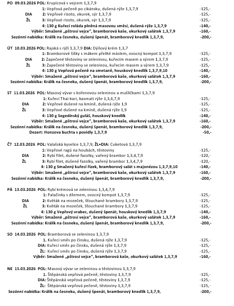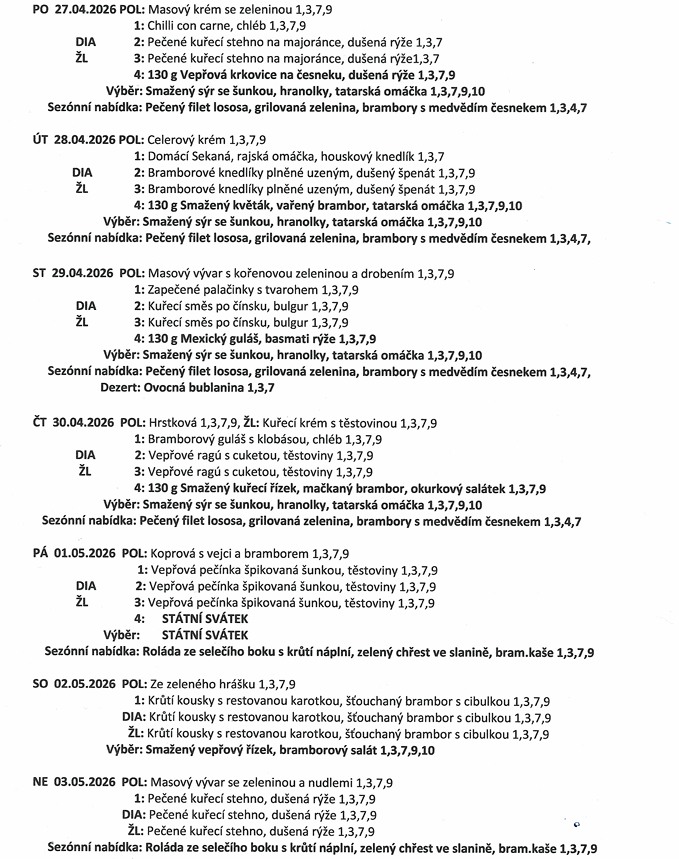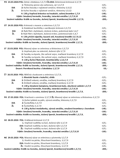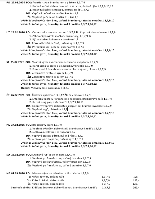 Nabízíme také objednání jídel ONLINE nebo osobně, víkendová nabídka s vyzvednutím každý týden již v pátek.